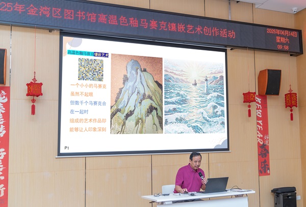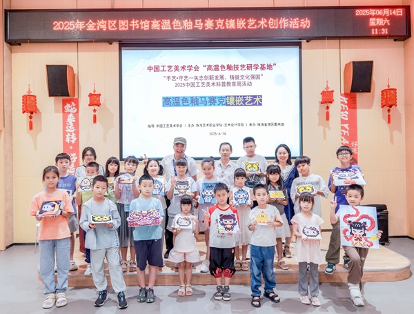 为深入践行中国工艺美术学会“矢志创新发展、铸就文化强国”的号召,珠海艺术职业学院高温色釉技艺研学基地于2025年6月在珠海金湾区图书馆成功举办“高温色釉马赛克镶嵌艺术体验课程”,以“群众实践传承匠心”为核心理念,为二十余名儿童青少年开启了一场传统与现代交织的艺术之旅!