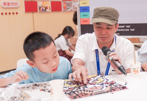 孩子们在李劲教授的指导下,以高温色釉马赛克为“颜料”,以金属板为“画布”,将传统工艺与现代设计思维结合。有的孩子以敦煌飞天为灵感,创作出灵动飘逸的镶嵌作品;有的孩子将抽象几何图形融入设计,赋予传统技艺以现代美感。通过亲手拼接,孩子们不仅掌握了工艺技巧,更深刻理解了“匠心精神”中追求极致的工匠态度。